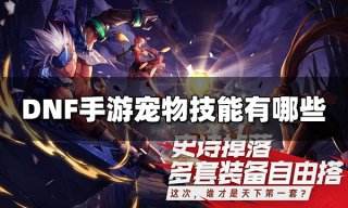 DNF手游宠物技能有【光环技能】、【恢复技能】、【护盾技能】、【免疫技能】,每只宠物都拥有其独有的宠物技能,我们可以根据自身职业特点来选择不同种类的宠物。
