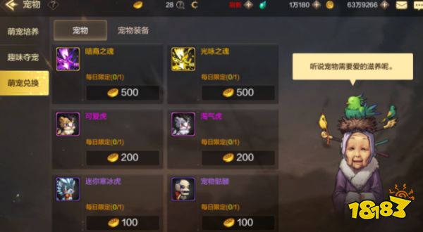 在奥兰奶奶的宠物交换处购买获得宠物,不同等级的宠物所需的宠物币数量也不同,宠物币需要我们不断积累才能达到一定的数量才能购买史诗宠物。