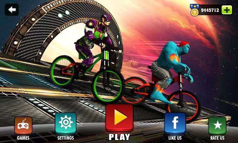 漫威英雄自行车比赛是一款在非常火爆的一款关于自行车竞速类型的游戏,在游戏中将会出现漫威英雄里面的角色,在高空中进行完成自行车挑战。你将在不可能的赛道上表演自行车比赛,使真正的特技在不可能的轨道和飞行自行车特技。空中的不可能轨道已经被建立为蓝天棘手的自行车比赛的冒险。