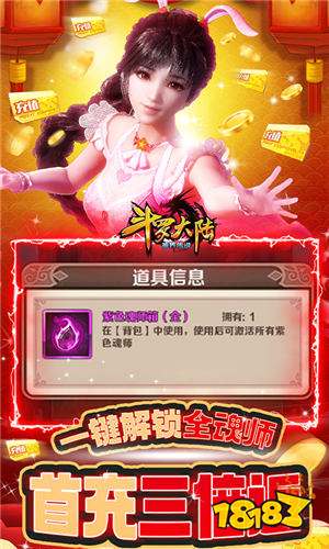 ★全部档位首充比例1:15000,续充永久送50%!首充即送橙色神魂师包!每日登陆再送红色魂师碎片!