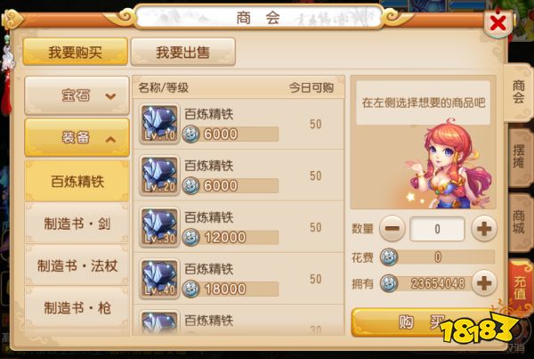 1、在商会中]购买宝石、装备、宠物培养材料、阵法书等道具