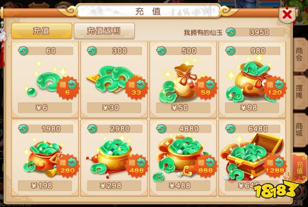 1、每次充值都有额外仙玉赠送,充值额度越大,赠送越多