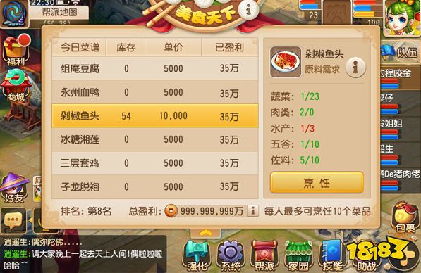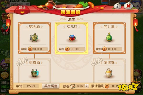 帮派菜谱需要菜谱残卷激活点亮,帮众可以在帮主的号召下,集中点亮部分菜谱。