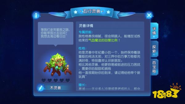 五行兽强烈推荐 这个小伙伴。 木灵兽。 恢复!只要满状态。怎么样都磨死对面!