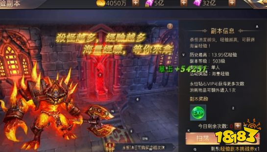 6、经验副本:根据VIP等级额外可购买次数,获取海量经验,升级主要途径