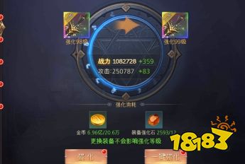 2、强化:消耗金币和强化石对装备进行强化,增加装备的属性和战力