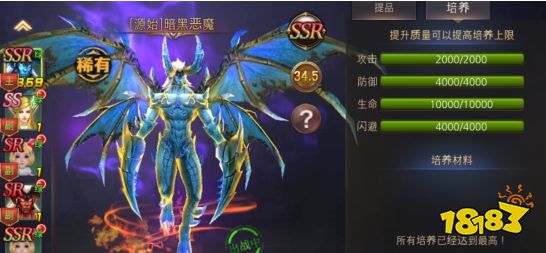2、提品和培养:消耗对应的材料可对其提品,增加破坏神的基础属性;提品以后消耗培养丹可对其进行培养,增加破坏神的属性