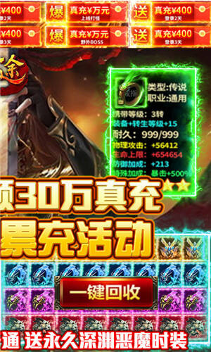 ★后缀说明:新增了充值卡活动,打任意怪爆充值卡碎片,每日击杀策划保底300元充值卡,每日击杀BOSS小怪保底200元