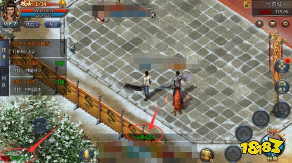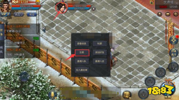 交易功能是必不可少的一项,需要交易道具的玩家之间,可以站在一块,通过点击对方角色选定,随机会在界面上方显示对方的人物头像,点击对方头像后,即可看到[交易]二字,继续点击。