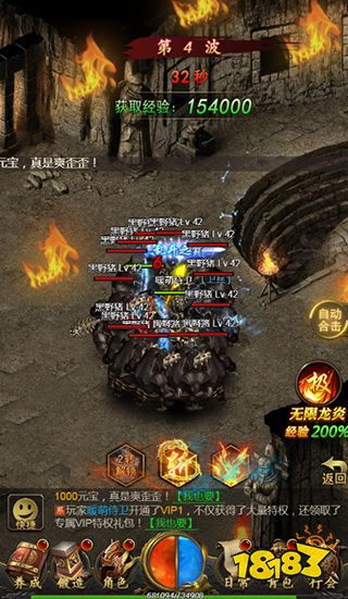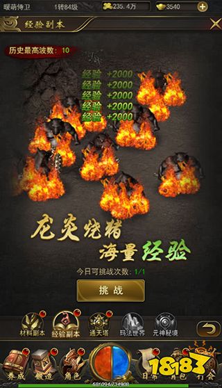 在经验副本中玩家可以体验到群体合击的超强大技能,玩家还可通过开通月卡来增加怒气回复速率,体验副本烧猪的快感。玩家在指定时间内击杀怪物的波数越多,所获得的经验也就越多。