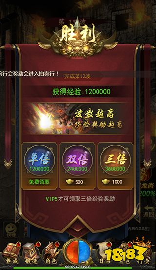 第2次挑战时,还可花费元宝获取多倍经验,如领取多倍经验,升级速度将快快高于其余玩家,VIP玩家还可获得额外的挑战次数哦!