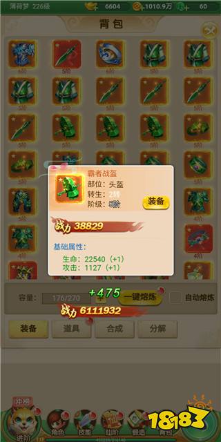 四、装备熔炼由于主线副本、全民boss都会奖励大量装备,而玩家的装备背包只有250栏位,因此必须熔炼装备来腾出空间。根据被熔炼装备的品质,系统会奖励若干铜钱和人物经验。