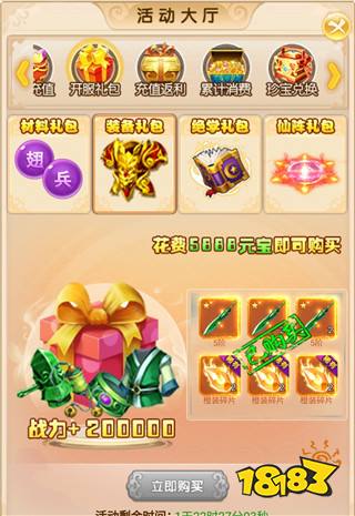 3、开服礼包、升级礼包中有橙色红色品质的装备,花费元宝即可购买,这类礼包奖励是远超元宝的价值的,小编建议大家购买,元宝可以在活动日常中慢慢攒,给它赚回来,礼包时限过去了就真的没了。如果正好有元宝累计消费活动开启的话趁机还能捞回不少奖励。
