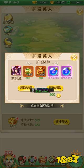 六、护送美人护送美人分为两步:迎接—护送,在迎接阶段,可用元宝来提高美人的品质,之后就能开始护送,护送结束将依据美人品质奖励铜钱。同时,玩家也可打劫他人的护送车队,成功也会获得大量铜钱哦!