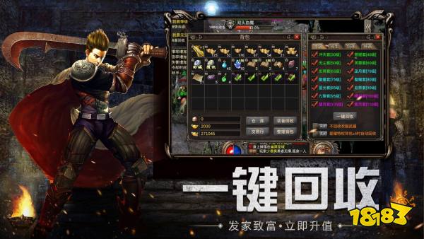 挂机爆神装,小怪出终极,装备上架秒回收,极品在线兑,惊喜更是多多,超变神装上线就送。