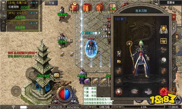 【游戏内容】1、复古传奇,自由开战,很多的任务,海量玩法。