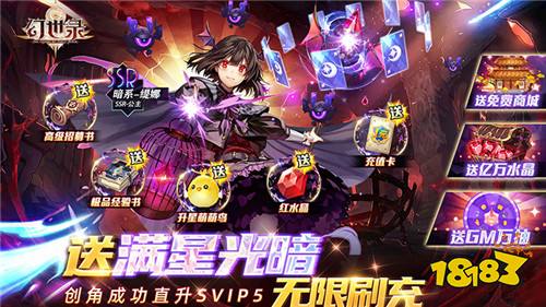 ★登录送SVIP5,充值比例:1:2000,超强群体输出卡,百次抽卡、强力符文和海量红水晶