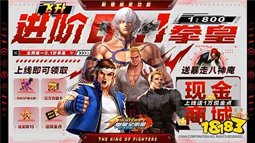 【KO开局】:充值比例1:500!上线送超人气SSR八神庵,十万充值!创角邮件直送50万至尊经验,秒升至尊12