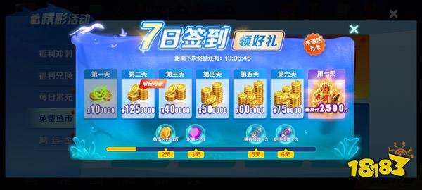 微乐捕鱼千炮版如何刷金币?1、每日签到