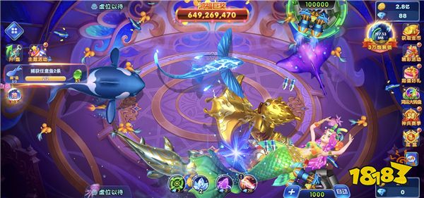 3、完成游戏中的任务即可解锁更高等级的炮弹,每个场景中最多四人,和他们抢夺大鱼,获取游戏中的特殊大奖吧。