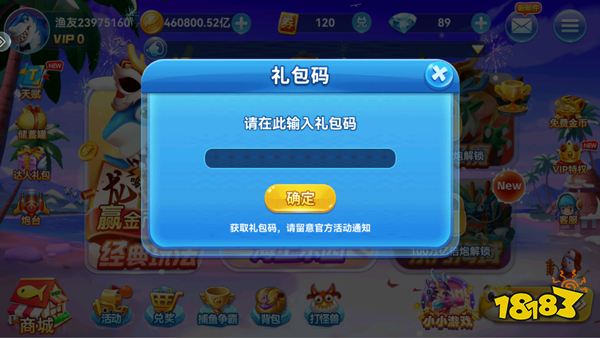 首先需要小伙伴们进入到趣游捕鱼这款游戏中,然后点击一下左上角的头像展开个人信息界面,在展开的界面中点击兑换码选项即可展开输入框,将兑换码输入进去并点击确定即可完成领取。