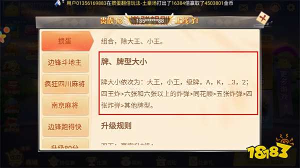 ②牌型大小:四王炸>六张和六张以上的炸弹>同花顺>五张炸弹>四张炸弹>其他牌型。