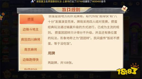 游戏提供了详细的新手教程,帮助新手玩家快速掌握游戏规则与技巧。2种模式排版,横牌+竖牌,用户可以随意选择。丰富的道具互动,形象的动画表情,独特的语音效果,简单的分享功能,外加丰富的钻石和道具奖励,让你连玩带拿。