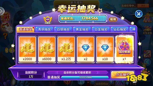 3、游戏内置幸运抽奖系统,击杀击败鱼就可以免费抽取。