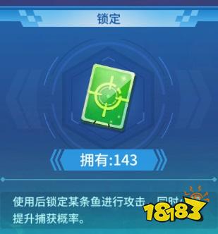 锁定:使用该道具后,会在一定时间内自动锁定渔场中倍数较高的鱼进行攻击,如果要更换目标,需要各位船长手动进行更换,使用这个道具后可以无视其他挡住目标的鱼类,尽情的对目标进行输出。