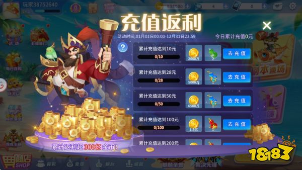 3、充值的同时也能参加充值返利活动,达到了规定的充值金额就能获得相应的金币奖励。