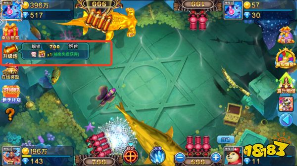 3、可以使用金币升级炮台,可以增加捕获鱼的概率。