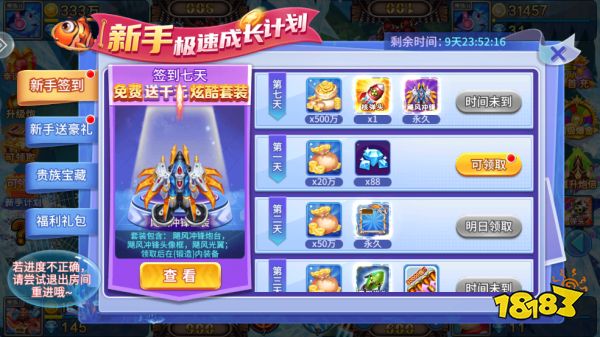 6、新手玩家在规定时间内完成新手任务可以获得道具、钻石和金币等奖励。