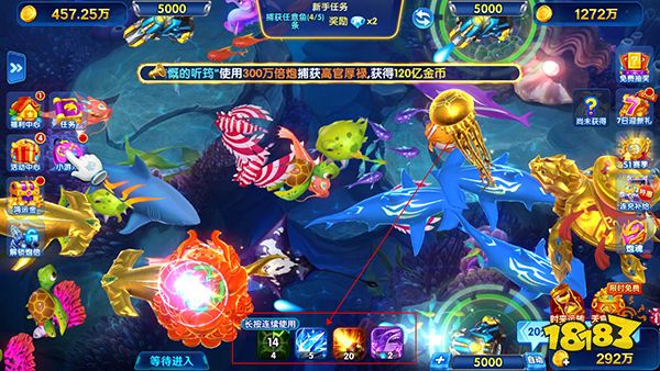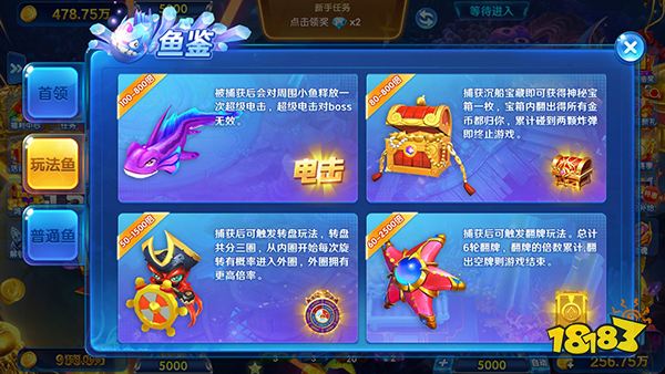 3. 特殊鱼阵型+几十种BOSS,钢铁帝王蟹、远古巨鲨等你挑战,爽感不断