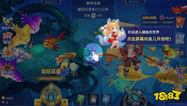 登录游戏后,就会有一个漂亮的小狐妖带您领略游戏教程,在这里小渔建议无论是捕鱼新手还是捕鱼老手都要阅读一下新手教程,因为教程不会太影响游戏进度,还能让您快速融入游戏当中。