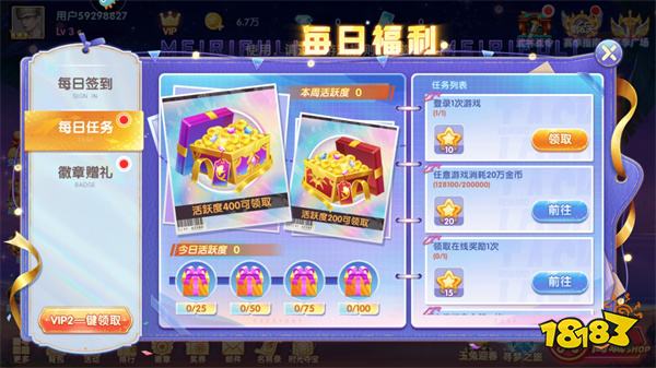 游戏的任务也是快速获取金币的途径之一,游戏庞大的任务系统为每位玩家准备了海量任务福利,无论是每日必做任务、专属游戏任务还是徽章任务,均有难度低、易完成的特点,玩家在游戏中不需要刻意做任务,每天玩玩游戏就能收获金币、狂暴等任务奖励!