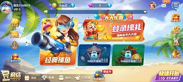1. 登录领取新手豪礼,含万倍炮台+海量金币,直接踏入高倍渔场