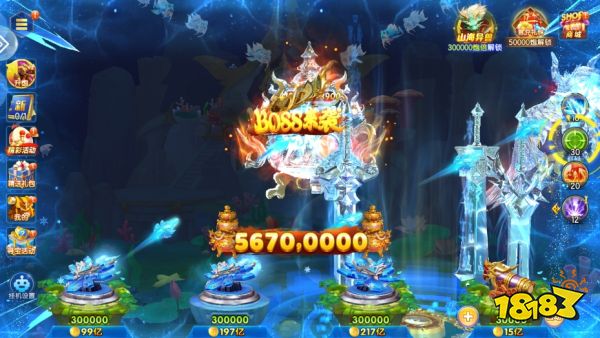 捕鱼道具:如冰冻道具冻住鱼类,分裂道具使炮弹分裂,加速道具提升发射速度。