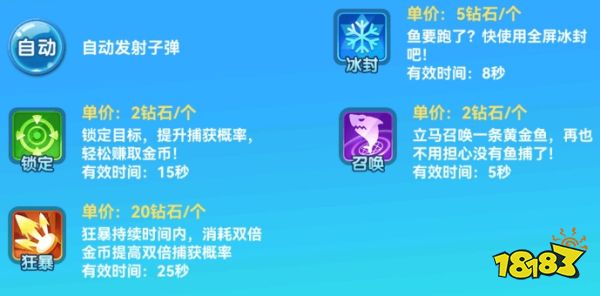 攻打大鱼能获得更多金币和钻石奖励,但同时也需要消耗更多的金钻,如大白鲨、大金鲨、大海怪等。还要注意的是,如果大鱼还没游到你面前,你使劲拼命进攻也是捕捉不到的,还浪费金币。