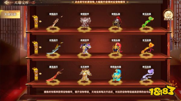捕获任意鱼皆可掉落宝物精华,进入宝库面板祈愿宝物将有更高几率获得。