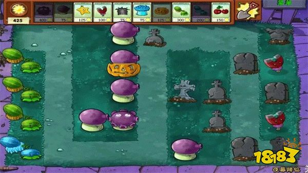 特点:地上有墓碑,不仅影响植物摆放,还可能钻出僵尸,晚上阳光产率很低。