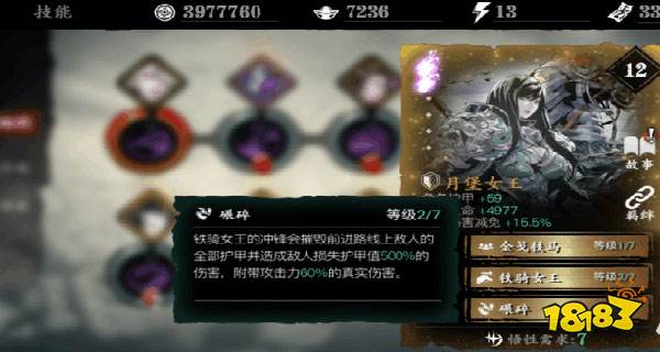 铁骑女王:释放相关技能召唤明月的铁骑,造成敌人的防御力400%的伤害。