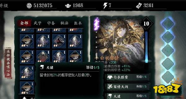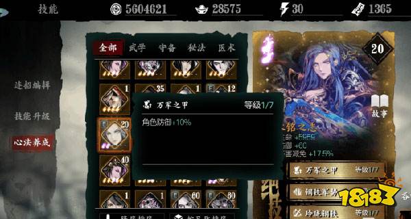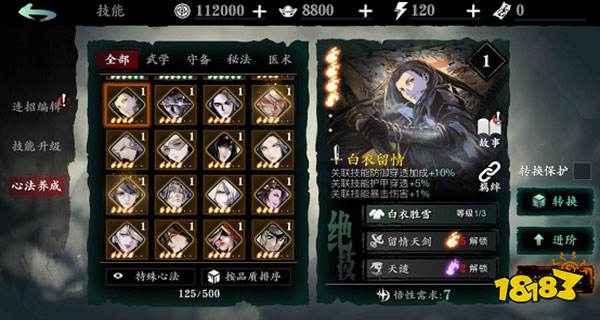 基础技能白衣胜雪:为角色增加10%的防御值。