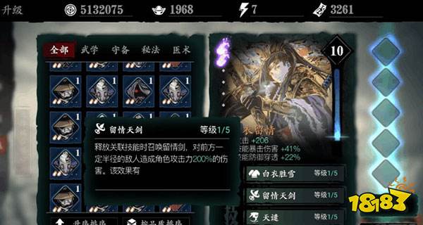 留情天剑:当玩家释放留情剑的技能时,对前方的敌人造成200%的伤害,可以叠加。
