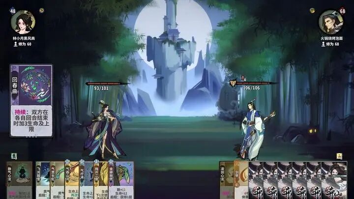 过渡期要根据对手风格调整策略,面对对攻型对手可将伤害前置快速击杀,数值不足时就用虚弱、防御牌苟住反击。化神期卡组基本成型后,要找准对手核心卡牌针对性克制。