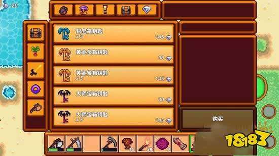 第一个获得钥匙的方法是直接用钻石购买,打开背包,点击上面的箱子,再点击左侧的箱子,就会出现商品,向下拉就会出现钥匙,有铜钥匙、铁钥匙、银钥匙。