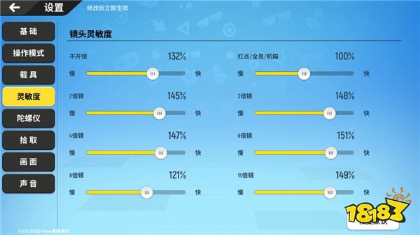 在控制灵敏度的案板上先自己预调一下你觉得合适的灵敏度。
