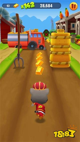 游戏的玩法就是比较传统的竖屏3D跑酷游戏 ,可以在游戏当中操控汤姆猫向前奔跑,躲避来自于城市街道的各类障碍物。并且在跑酷的过程中还需要尽可能的多筹集金块。