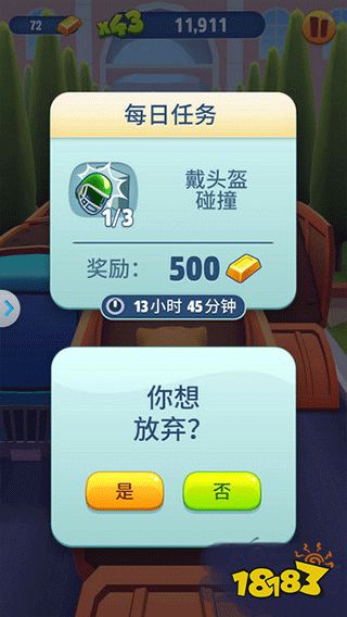 4、小编注意到,积累分数任务要求玩家必须在一次跑酷过程中达成,若获得规定分数前跑酷失败,玩家就必须重头再来。除非你对自己的手速有足够自信,否则切勿为了收集金条而在达成目标前进行高风险操作;