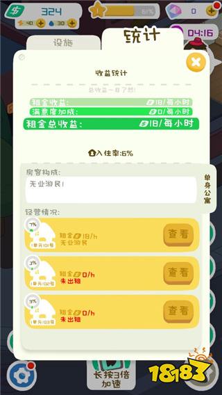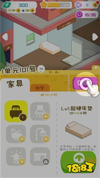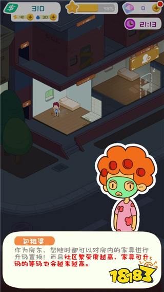 6、作为房东,您随时都可以对房内的家具进行升级置换,而且社区繁荣度越高,家具可升级的等级也会越来越高, 升级了家具,租客们会自觉提高租金的。没有人能从包租婆手下占到便宜,这里点击您想要进行操作的房间,就可以查看和升级家具