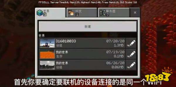 首先你要确定要联机的设备连接的是同一个wifi, 连接同一个wifi点好友只要其中一人创建了世界, 这里就都会显示, 记住一定要同一个wifi。